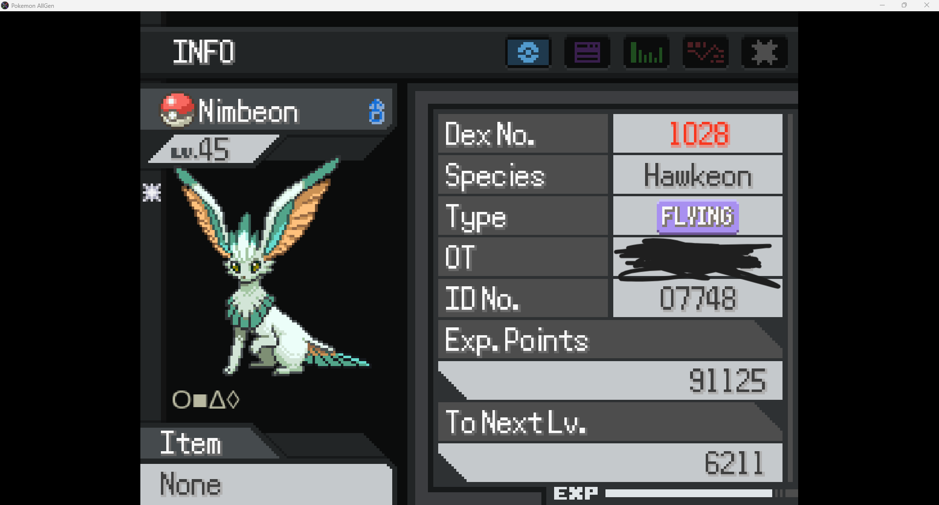 Hi, so I'm trying to get shiny versions of all of the Eeveelutions including the new ones, but when I try to evolve one of my shiny Eevees into Nimbeon I get the Sprite for Hawkeon it tells me that it evolved into Nimbeon and have the name, this a glitch or is there a way to get both versions?