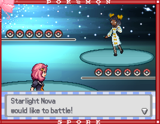 Reuploaded DDDL and Spork DDDL: -another Delicia VS sprite update made by Palletite -Isaac trainer sprite updated by Steffi (is the one in Steffi's post above!) -the Hippopotas at the pie-eating contest is now the green shiny one (overworld sprite made by Steffi) -added a few more guards at the Party District, along with a small dialogue addition about the trespassers waiting until the guards were changing shifts to try getting in (I thought it was weird I only put one guard there) -all uses of Trainer(s), and Ability/Abilities when referring to Pokemon Abilities are now capitalized SPORK: Updates: -new Elite Four and Champion rooms made by Enigma -all ZA Mega Evolutions are now in (includes a new Isaac event for Eelektrossite, and a new Brutus event for Lucarionite Z) -custom shiny Lunatone and Solrock made by me -custom shiny Relicanth made by Mr. Fahzy -Genesect quest rewrite: you find Genesect while exploring the Classic Park cave with Lime; Anthony shows up to explain Genesect's situation and asks you to retrieve the drives; after doing so, you obtain Genesect after a battle where it uses all four of its drives -all Planet Spork simulations for ZA characters now have their Mega Evolutions -added more NPCs and items to Tullborn City -added missing party/summary screen icons (most Mega Evolutions, some female Pokemon for ones that have gender differences, Cosplay Pikachu, Primal Kyogre and Groudon, Origin Dialga and Palkia, alternate forms for Arceus, Silvally, Castform, and Vivillon; also added canon shiny icons for the Zubat and Sandile lines) -added Tatsugiri NPCs to the Sea Star Society Meeting Section that can change Tatsugiri's form -added expanded choice menu to the X Items ingredient mixer in the Vitamin Factory, and the game now mentions not needing any items if you picked the Flareon Sign -added text to the statues in front of Ryoko's Castle and the Hydreigon statues in the throne room -added a link to the wiki in the game folder -all uses of Trainer(s), and Ability/Abilities when referring to Pokemon Abilities are now capitalized -team updates: Ashley: Litleo/Pyroar and Darumaka/Darmanitan changed to shiny Charcadet/Armarouge (nickname Robot) and Combusken/Mega Blaziken (nickname Swords) Wendy now has Mega Scolipede in her postgame rematch Professor Mangrove's Relicanth is now shiny Eva: Toxicroak changed to Toxtricity Low Key Fixes: -Fairy Arceus now has sprites -all Arceus and Silvally form sprites are now in the correct order; half of them were one off from what they were supposed to be because of an unused "QMARKS" form that I didn't know existed -Carnivine's shiny front and back sprites are now consistent -in Shiny Scouting, Blacephalon is now grouped with Spork's custom shinies instead of with the other UBs -can no longer walk on a few cliff tiles in Tullborn City -corrected typo for one of Silk Studio's trainers who said "sylish" missing the t in stylish -corrected wrong name in the player's Nosy Nosepass interview, where if you ask if you can adopt him, he mentioned Julian from "Alumia's birthday party" instead of Crolea's The new E4 rooms I mentioned last month have now been added! Arnalda has a wrestling arena with seating, Triston's is inspired by the Abyssal Ruins but with a gothic style, Seamus' room is based on the legend of leprechauns and the pot of gold at the end of the rainbow (with the different colored flowers symbolizing the rainbow), Peach's has a bunch of copies where you need to find the real Peach, and Agne's is surrounded by a space background. The battle with Emily is in a new hallway before a warp panel that takes you to Agne. A couple things to note: -For Peach's room, Surf is removed from your inventory when you enter and given back when you leave. This is to prevent the player from being able to surf in the room, as it has surf properties in order to use water reflections. -These are specifically the E4 rooms; the revamped Party City maps are ongoing. Enigma made these in advance last month while taking a break from the Team Portal HQ The "Next" signs you can see in one of the screenshots were inspired from the Arena modes in Kirby games that show your next opponent from the waiting room. Arnalda will also have one when the Starlight Citadel is mapped in the future. Thanks to Enigma for making these, they definitely give the feeling of a final challenge after a long journey! I think Arnalda's makes an especially strong (Fighting pun intended) impression with the wrestling arena, and imposing statues of the Machop line being the first thing you see when you enter the room! Shiny Lunatone is based on a strawberry micromoon! Once in a while, the moon will be visible in rare colors at certain times of the year. I looked at an image of which ones will happen this year and Steffi picked strawberry micromoon, so that's the one I did! Shiny Solrock is based on a total solar eclipse. For Relicanth, a community member named Mr. Fahzy posted a shiny Relicanth he made several years ago in the Creative Works section. I saw it back when it was posted and really liked the added treasure map details. I've been thinking recently that it would be perfect for Professor Mangrove with their treasure hunting hobby, and was able to reach out to Mr. Fahzy on Discord to ask if I could add it to Spork. Thanks to Mr. Fahzy for making it all that time ago, and for allowing me to add it! For Ashley's team changes, the shiny Armarouge is to match Kayla's shiny Ceruledge. I had been planning on giving her Mega Pyroar when ZA came out, but then I thought Blaziken fit her more, since it's known for footwork and can learn Swords Dance. I'm not sure what my reasoning was for giving her Pyroar in the first place. I did once read that lions can leap 36 feet, so maybe I thought leaping was kind of a related skill to dancing? Either way, I think Blaziken is a way better fit. I hope you all like the new E4 rooms as much as I do!