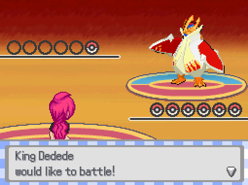 WINTER I've also updated the Summer screenshot a few posts up, since some characters have received updated sprites. Palletite and Steffi made new sprites for Delicia + Felicia''s parents (+I gave their dad sunglasses), Belinda, Belladonna, Stryker, Ryoko (directly behind Delicia in the summer and winter screenshots), as well as some different sprites for DDDL too for what some the characters looked like years before Spork! All of the updated sprites look amazing and I'm thankful to Palletite and Steffi for making them! TRUE ARENA People who've played the Kirby games might be familiar with this concept. Some of the Kirby games have postgame modes called The Area and True Arena, which are basically boss rush modes. The True Arena here will be the same. You'll battle every character from Spork as Delicia, including Delicia herself. The reward is the password for a new area in the next reupload of Spork where you can endlessly shiny hunt event Pokemon that can normally only be obtained once. The True Arena is an optional area that can be done at the end of Return to Dreamland.