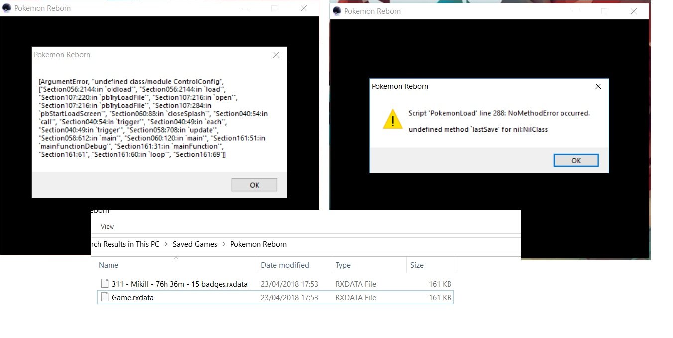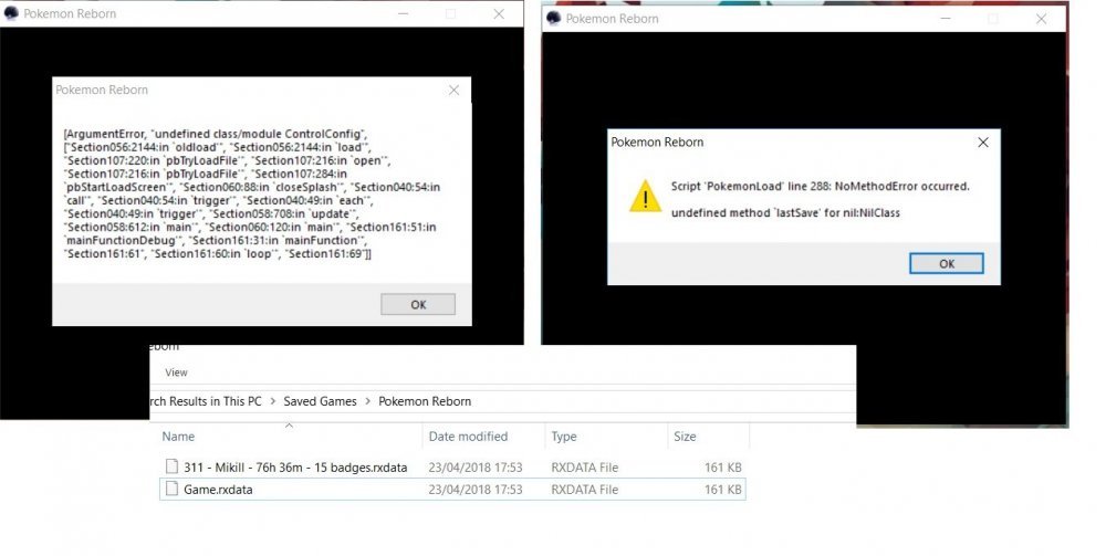 17 hours ago, mikillatja said:I used to have an older laptop with my reborn save file on it. I made a back-up of all files just in case.But when I put my old rxdata into the file where it's supposed to go (did something change since EP 16??) I get all these pop-ups telling me somethings wrong.