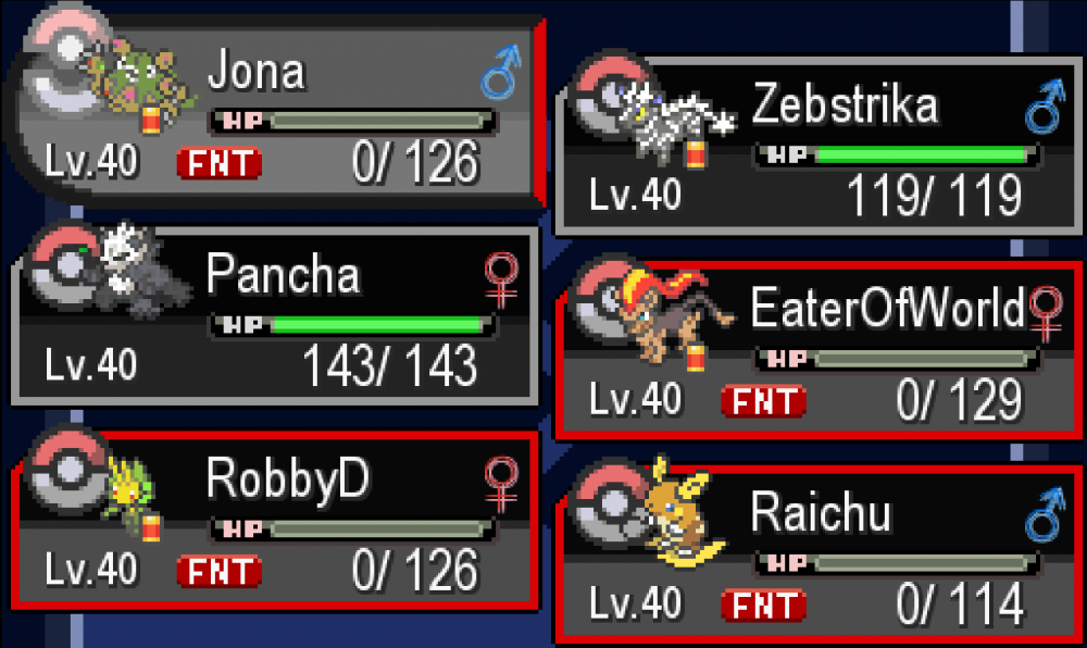 So I thought it wouuld be cool to beat culvier clan mars in gearen city at lvl 40, and i thought my strategy was pretty cool and decided to share :D Part 1: Abra My strategy here was to use the trick room abra sets up to beat up the next pokemon, kadabra, but also to set up 2x toxic spikes so that alakazam wouldn't be a problem in the future, i did this using my garbodor. Part 2: Kadabra Here i just wanted to kill it and bait out the 2 full restores he has on normal difficulty. I did this using my leavanny and the trick room his abra set up earlier, along with a bit of good RNG. Part 3: Alakazam This was the most intense part, but really the strat was pretty simple: Start out with any pokemon, switch into pangoro and switch back out to another pokemon while letting toxic do the work. I also want to note that the MVP, Garbodor, was able to survive a hit from a 45 lvls above him alakazam using energy ball. GG Mars Here is my team for the fight