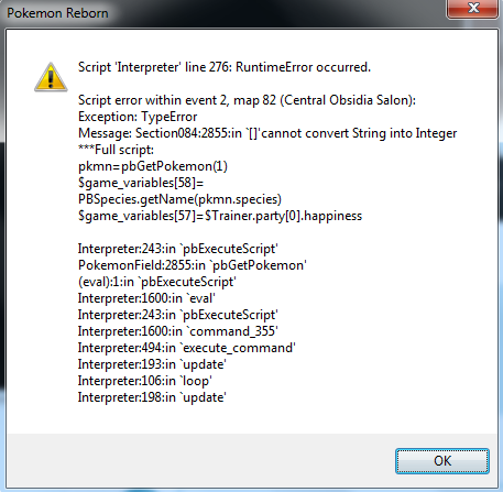 Koritree 0 Posted January 6, 2015 Share Posted January 6, 2015 My game keeps crashing! I get a runtime error whenever I talk to the Vulpix lady in Obsidia! I think the game wants to give me the Vulpix, but for some reason can't process the coding. I have no idea what to do. I'm brand new to Rebord and I don't even know how to make a copy of my save file in case I need to update the game, let alone fix this. Thank you for helping!! The pic below is what I keep getting. Link to post Share on other sites