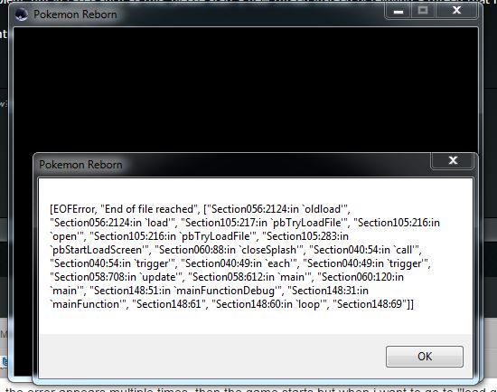 DashingStorm 3 Posted October 6, 2015 Share Posted October 6, 2015 End of file errors are corrupted savefiles. What you did prior to getting said corruption is unknown, but all you can do to remedy this is to load up the highest number savefile you have in your Pokémon Reborn folder (which is in Saved Games) and rename that file to Game.rxdata instead. Make sure you rename this broken Game.rxdata to something else before converting a different savefile. Link to post Share on other sites