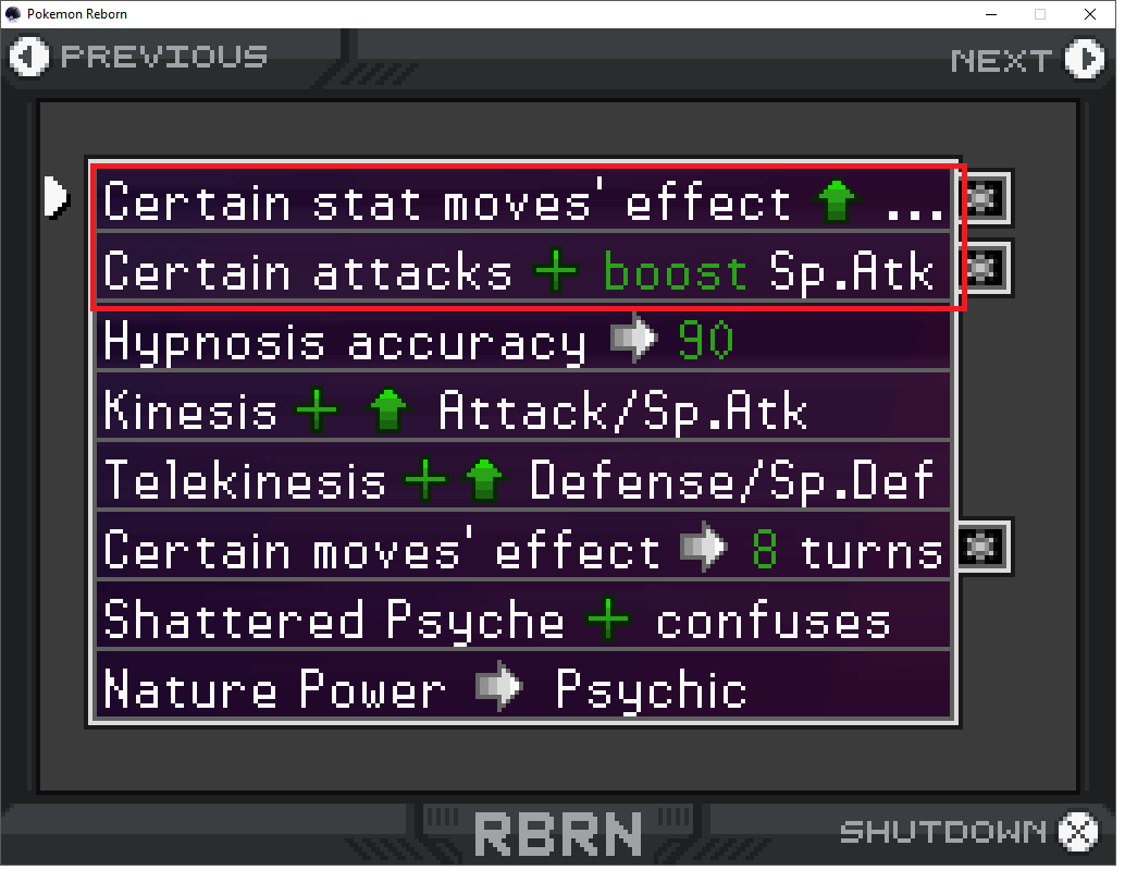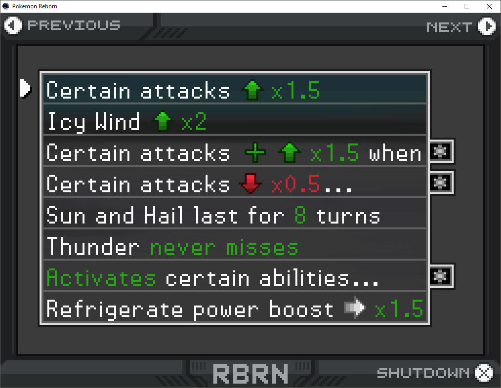 Elvenlore 37 Posted June 2, 2018 Share Posted June 2, 2018 Purify's move description reads: "The user heals the target's status condition, restoring their own HP is succesful". When Blue Moon Ice Cream is held by a Pokemon the text spills out of the textbox. This happens when viewing the Pokemon's summary or hovering over it in the PC. Perhaps it should be rephrased to 'Moon Ice Cream? Final Gambit's move description reads: "The user sacrifices itself but does damage equal to the its current HP." I'm also sure this has been mentioned but Shiny Dragonite's backsprite has a horizontal white line on the right side when Dragonite is in battle. Link to post Share on other sites