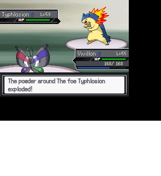 Cagnucki 0 Posted December 31, 2017 Share Posted December 31, 2017 Hi everyone, not sure if this is a minor error or not so I decided to start this topic. When Vivillon uses the move Powder against a fire type Pokemon that uses a fire type move, an error pops up and the fire type Pokemon doesn't lose a quarter of its HP as it should and doesn't attack my Vivillon. Also, Powder loses one of its 20 PP. I'll leave some images for you to see. Correct any grammar / spelling mistakes, please. Link to post Share on other sites