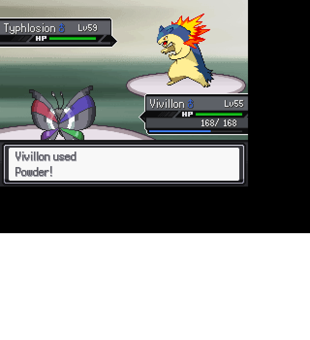 Hi everyone, not sure if this is a minor error or not so I decided to start this topic. When Vivillon uses the move Powder against a fire type Pokemon that uses a fire type move, an error pops up and the fire type Pokemon doesn't lose a quarter of its HP as it should and doesn't attack my Vivillon. Also, Powder loses one of its 20 PP.