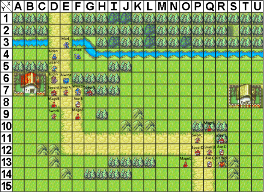 Twinwolf Posted March 17, 2018 Author Share Posted March 17, 2018 The group walks for a bit more - maybe another hour. The town is up ahead, just past a river. Winston slows to speak to the others. “We’re near enough that I can tell you why we’re here. We’re here for an important individual. You’ll know her when you see her - bright teal hair, very distinct. Should answer to Elizabeth. We’re basically grabbing her and bring her to the capital. Willingly, is the preferred means, but this is by order of the King and she is a citizen, so if we need to… well, I’m sure you can figure it out. When we get there, we’ll spread out- hold on.” He pauses, looking ahead. A group of men are milling about on the outskirts, all armed, and none with the armor of town guards. They’re too well uniformed to be bandits, too - and one sees the group and shouts to his fellows. “Patrol incoming! Prepare yourselves!” Winston’s expression turns hard. “...These don’t look like bandits. We may have a situation here. Get your weapons.” --- The enemy commander frowns. “There wasn’t supposed to be anyone coming.” he says. “We didn’t hear anything!” A lesser soldier insists. “Doesn’t matter. We’ll take care of them - you go and warn General Dane. More may be coming. ” The commander says, dismissing the soldier. He hefts his axe, and waits for the oncoming enemy. Player Phase 1 Player Unit Status Spoiler Aidan: 21/21 [Eq: Fire] Alwine: 20/20 [Eq: Hatchet] Anea: 15/15 [Eq: Heal] Lysander: 20/20 [Eq: Wooden Sword] Marl: 16/16 [Eq: Training Bow] Tsidin: 20/20 [Eq: Slim Lance] NPC: (Controlled by players - anyone may give orders) Winston: 22/22 [Eq: Slim Lance] Enemy Status (Stats:) Spoiler Axeman A: 23/23 [Eq: Iron Axe] Axeman B: 23/23 [Eq: Iron Axe] Axeman C: 23/23 [Eq: Iron Axe] Axeman D: 23/23 [Eq: Iron Axe] Mage A: 20/20 [Eq: Fire] Mage B: 20/20 [Eq: Fire] Mage C: 20/20 [Eq: Fire] Mage D: 20/20 [Eq: Fire] Spearfighter A: 22/22 [Eq: Iron Lance] Spearfighter B: 22/22 [Eq: Iron Lance] Spearfighter C: 22/22 [Eq: Iron Lance] Spearfighter D: 22/22 [Eq: Iron Lance] Swordsman A: 21/21 [Eq: Iron Sword] Swordsman B: 21/21 [Eq: Iron Sword] Swordsman C: 21/21 [Eq: Iron Sword] Swordsman D: 21/21 [Eq: Iron Sword] Gerald: 24/24 [Eq: Hatchet] Link to comment Share on other sites More sharing options...