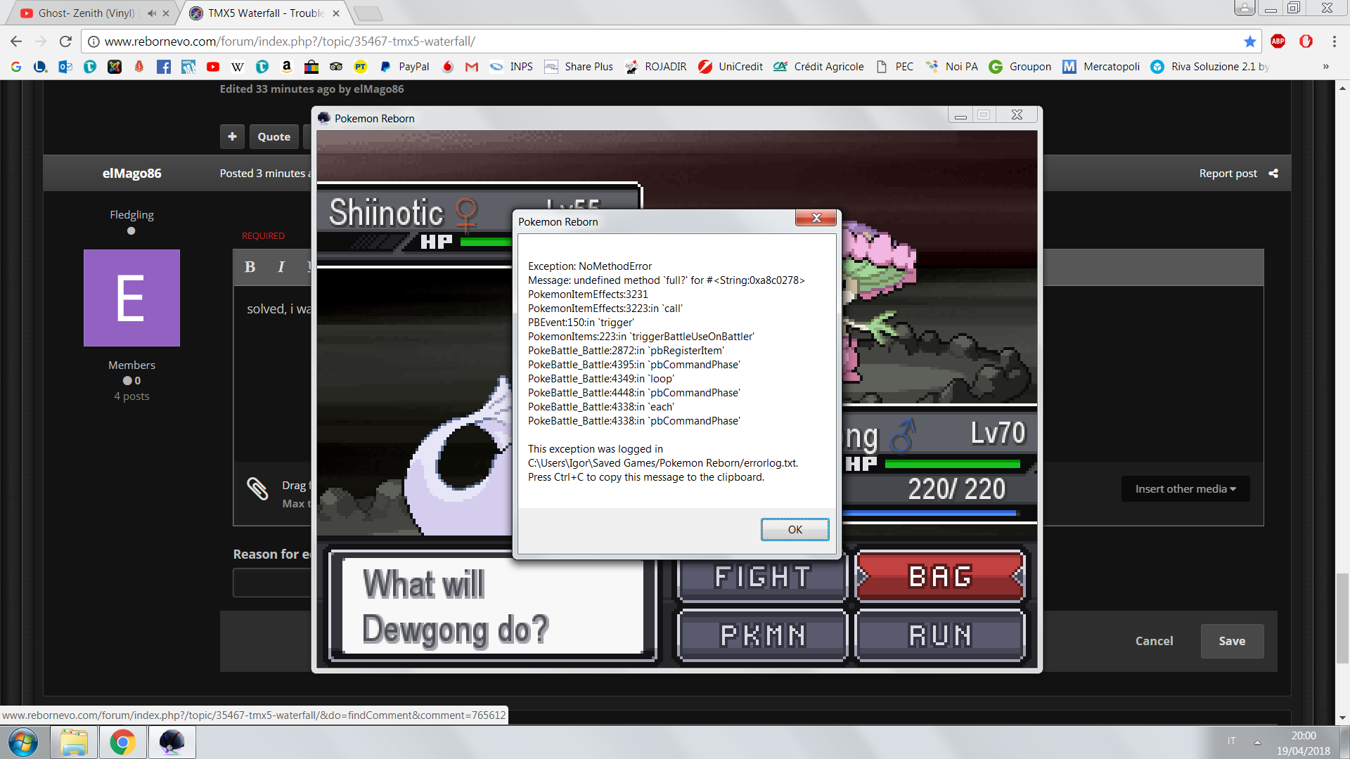 elMago86 1 Posted April 20, 2018 Author Share Posted April 20, 2018 1 hour ago, Walpurgis said: That happens when you try to use the PC, right? It works perfectly fine when I test it for the file I posted. Try redownloading the game, some data might have been damaged in the download/decompression yes, with the pc, or the items in the bag.. so i try to reinstall the game. many thabks! edit: yes! all it's working good 1 hour ago, Walpurgis said: Link to post Share on other sites