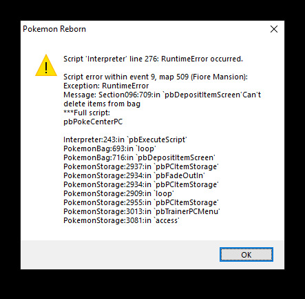 ToDie 7 Posted May 28, 2019 Share Posted May 28, 2019 Hi there, for some reason, I have 1524 blast powders in my inventory. Something slightly above 100 should be correct. If I want to store all of them in the PC, the game crashes. If I deposit the correct number of items, I still have like 30 stacks of size 0 in my inventory. Further, I am pretty sure that some items at the bottom of my inventory vanished (star pieces, rare bones etc.). I am using a whole bunch of mods, in particular the BagSortByType mod. It is not a very bad bug but kind of annoying and I am a bit worried that more items could vanish. I uploaded my safe file and I wonder if anyone can fix this or tell me what to do. Thanks in advance! Game.rxdata Link to post Share on other sites