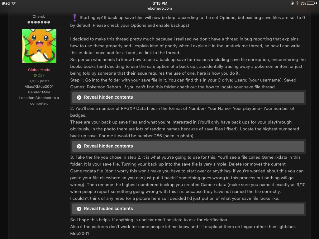 Harryp 10 Posted July 2, 2019 Share Posted July 2, 2019 You have to go into your game files folder, where your save file is stored and replace the game.rxdata file there with your backup. I am on Mac so it's different for me. However I recommend going into backup saves thread in trouble shooting. Link to post Share on other sites