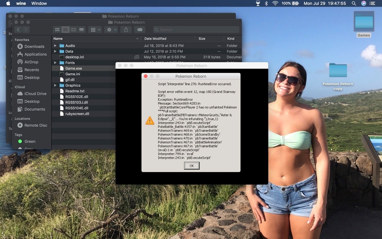 Candy 1688 Posted July 30, 2019 Share Posted July 30, 2019 2 hours ago, Bsmith9606 said: I was playing on my MacBook using wine and my game crashed. I saved in the middle of a battle by accident and since it was a dual battle my partner was out of issuable Pokémon. Now it will not let me continue... I don’t know what to do.. You might want to load an older save file. Look for a way to show hidden files and then Finder > Go to Folder > ~/.wine/drive_c/ I think from there you can look for Saved Games folder which should contain save files if you had automatic saves generated. Just get rid of the current Game.rxdata file and choose one of the more recent old save files and rename as Game.rxdata (you might want to duplicate it in case something goes wrong). Link to post Share on other sites