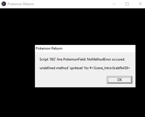_Sayari_ 0 Posted September 12 Share Posted September 12 Can someone help me please. I searched on the forum and found only different error numbers and links who doesnt work (at least what i found). i beat Rasmodus (eight Gym leader) and saved outside his mansion. Now i wanted to play a few days later and get an error (Script '082' line PokemonField: NoMethodError occured. undefined method 'spriteset' for#<Scene_Intro:0xebfb438>) Best regards~ Quote Link to post Share on other sites