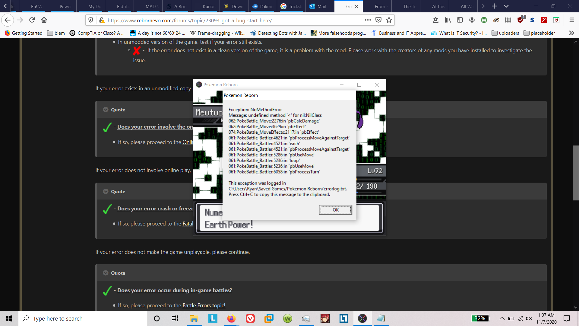 ryannnow 2 Posted November 7 Share Posted November 7 (edited) SO I figured I might as well report this bug I encountered before I make a joke post. This can be encountered by using earth power in Terra's gym. The glitch causes you to basically skip your turn. Animations were turned off btw. forgot to say the version 06/12/20- 18.4 Edited November 7 by ryannnow forgot to include version Quote Link to post Share on other sites