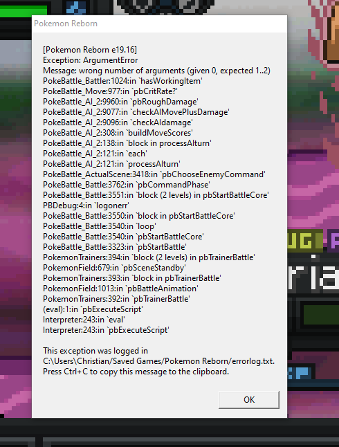 KenzieEmm Posted June 17, 2022 Author Share Posted June 17, 2022 2 hours ago, Dred said: Ariados Crest breaks upon trying to attack an opponent. edit1: doing anything with Ariados out will cause this error. edit 1.5: This happens even when not holding the crest. It was just another formatting error :[ I hate how finicky code is. Anyways I'm switching over to folders like you suggested to make it easier to patch things PokeBattle_Battler.rb Quote Link to comment Share on other sites More sharing options...