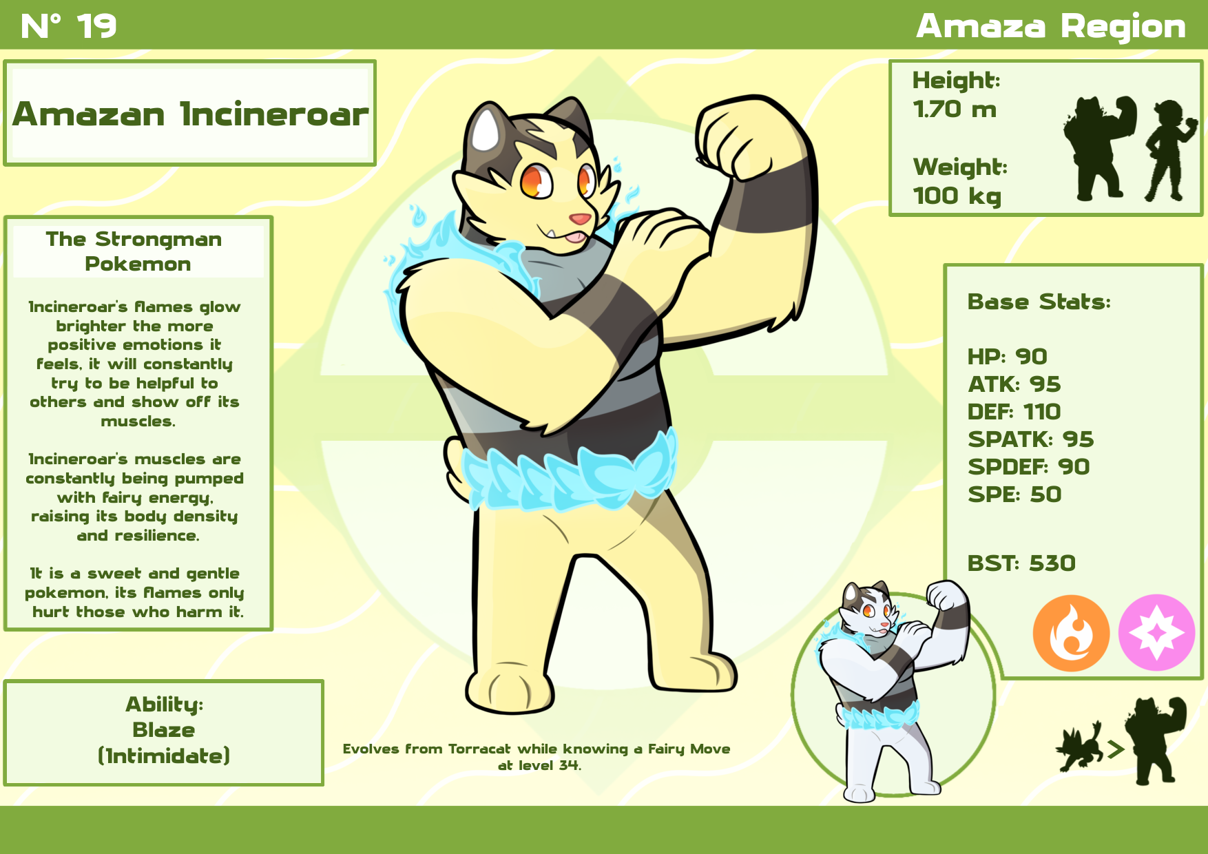Cylland Posted yesterday at 07:40 PM Share Posted yesterday at 07:40 PM Hello! I like drawing fakemon, so I decided to import my favorite design into Reborn. Amazan Incineroar is a Fire and Fairy type variant of Incineroar based on a circus strongman, it is much more colorful and friendly and might give your run tonal whiplash. I do not have a computer so I can only run Reborn on my tablet, therefore, no Rejuvenation version of this mod, however, you could easely port this into a rejuvenation mod by opening montext.rb using Notepad++ or another editor of your choice and coppying the last 3 pokemon from the file into your Rejuvenation montext.rb and then run compilemons by pressing f6 (make sure to alter the dex number so to not overlap with any other pokemon in rejuvenation!). Then replace the resulting montext.rb and mons.dat that are in the zip file, you will need access to debug. I am not smart enough to make this an actual form change, so instead i duplicated Litten and (A-Litten, A-Torracat and A-Incineroar) meaning you will need to give yourself the pokemon through passwords like freestarter, customstart, debugmode in reborn and whatever means you have in rejuvenation. Changes made to Litten and Torracat to fit the form are the abilty to learn Disarming Voice, Draining Kiss via level up and Play Rough via TM for Litten and Dazzling Gleam for Torracat, and of course, Amazan Incineroar has custom stats, level up moves and move compatibility. INSTALATION Simply drag and drop the folders into your reborn folder and overwrite when prompred (Please make a backup of your game files and save files beforehand.) Hope you enjoy! (The screenshot uses a level 100 incineroar leveled down to 10) Amazan Incineroar Mod.zip Quote Link to comment Share on other sites More sharing options...